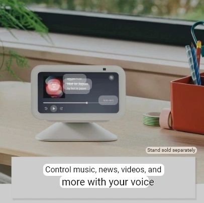 Designed to fit seamlessly into your space, the Echo Show 5 is perfect for a bedside table, kitchen counter, or desk. Its sleek and minimalist design complements any room decor.